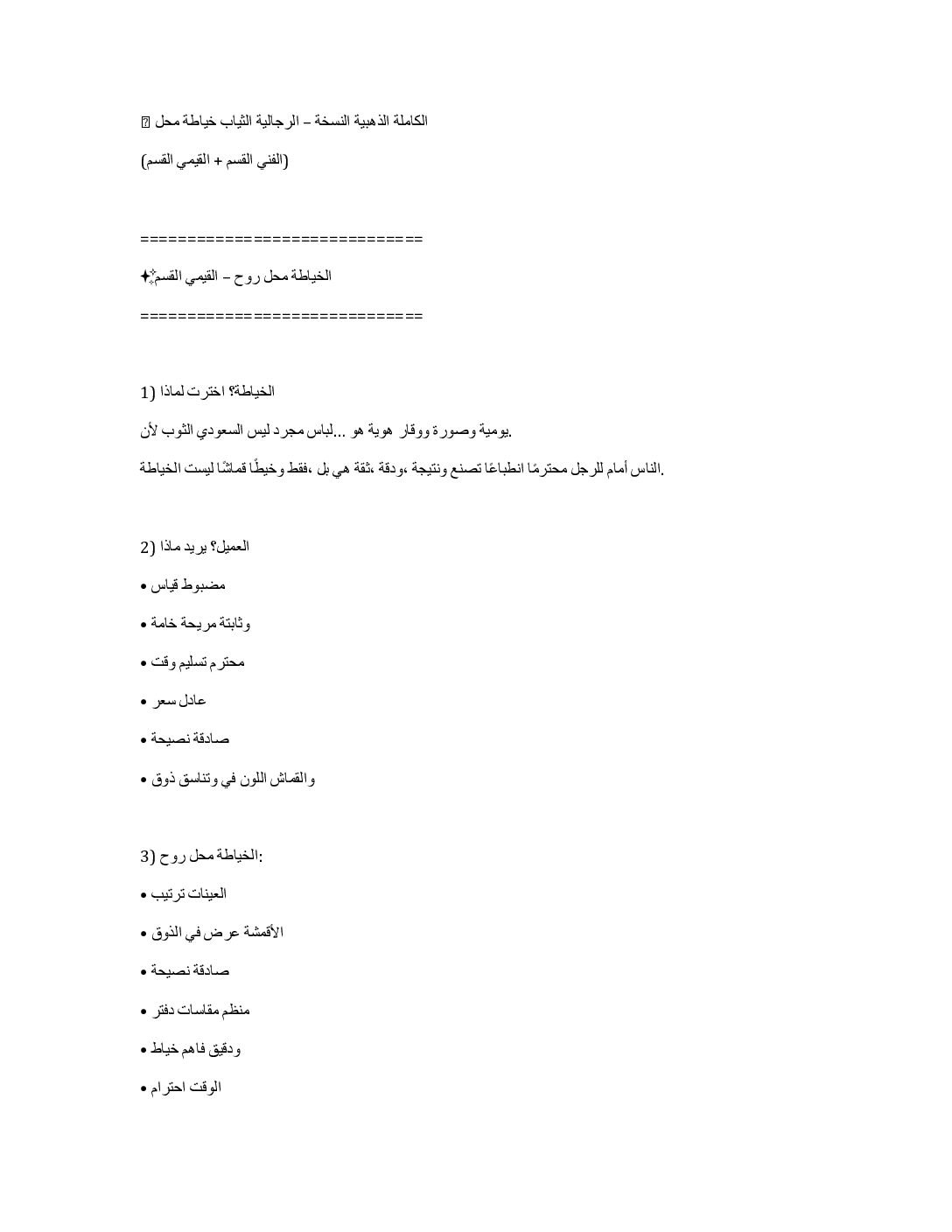 •فهم قيمة الثوب الرجالي من منظور العميل